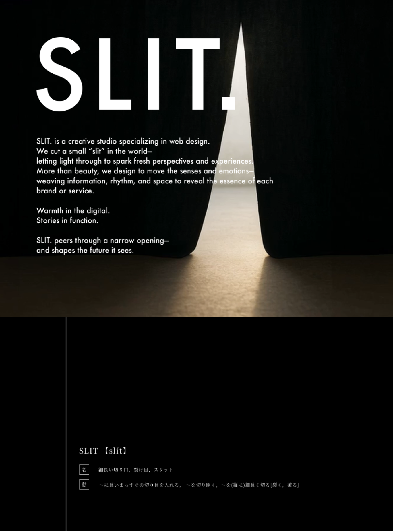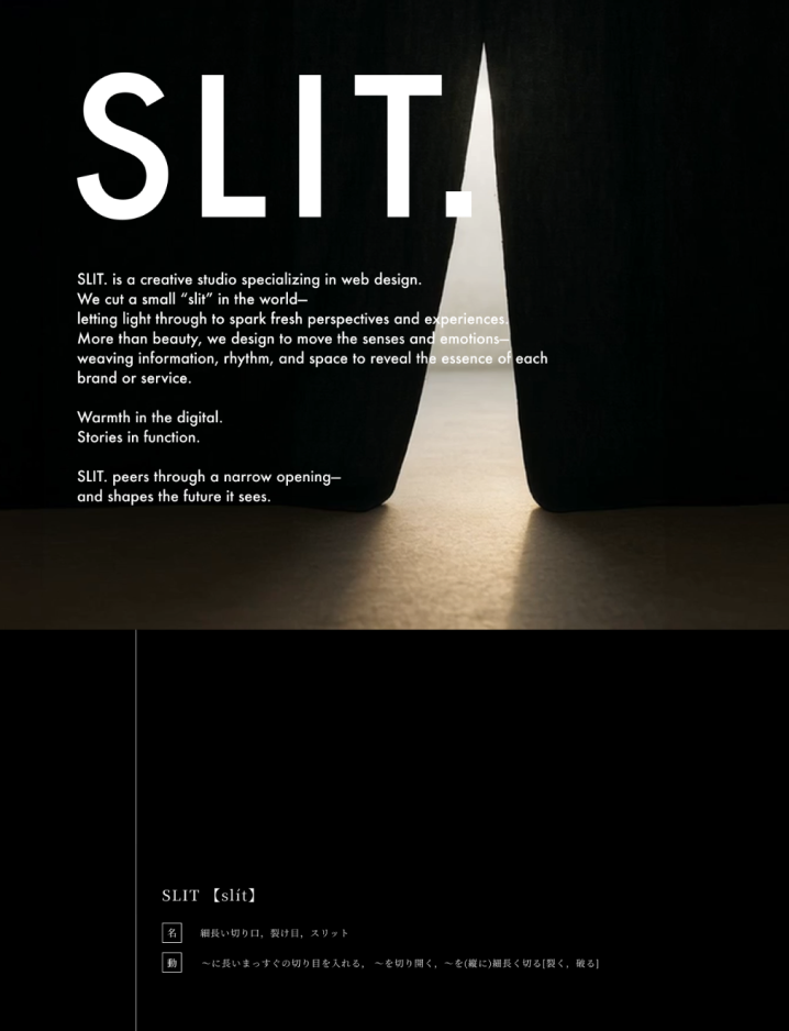 東京を拠点に、WEBデザインを中心に活動しているクリエイティブチーム SLIT.のロゴ、サイトデザイン